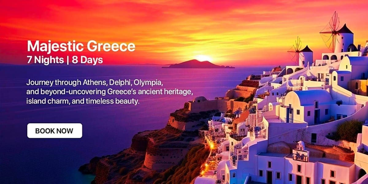 Designed for seven days and eight nights, ‘Majestic Greece’ is all you need for a comprehensive overview of Athens and other iconic attractions surrounding it. One of the major highlights of this Athens tour package is a fully guided sightseeing tour, which heads you to the legendary venue of the first modern Olympic Games, the National Library, and even the timeless Acropolis. The subsequent days of this holiday also cover a trip to some of the most scenic places, including Kamena Vourla, Kalabaka, Delphi, Poros, Epidaurus, Nafplio, and Olympia, among many others.